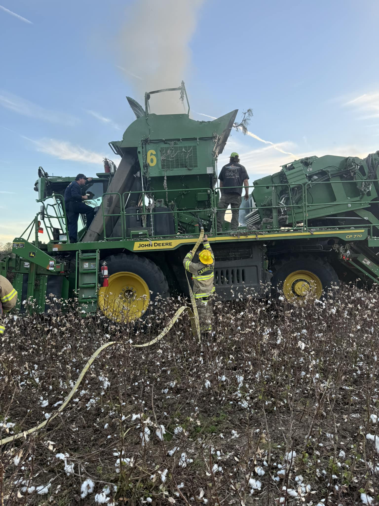 On November 13th, Carrollton VFD units responded to the 12300 block of Nike Park Rd for a cotton picker on fire. The first arriving unit reported smoke visible from the hopper.