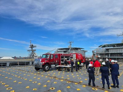 Three of our members recently assisted with training at the Port of Virginia Marine Firefighting Command School. This Command-level course is designed for 100 students from around the globe, including participants from California to the Netherlands. The curriculum focuses on the Command aspects of all-hazard marine incidents.
