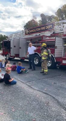 Carrollton Volunteers had a busy week last week visiting local schools, pre-schools and day cares to discuss fire prevention & provide training to local educators on fire extinguishers and fire safety for the classroom. Members kicked off the week by visiting Carrollton Elementary during their staff training day to discuss fire safety with teachers, which included a hands-on training for fire extinguishers. The remainder of the week included visits to Carrollton Elementary, Lighthouse Preschool & Day Care, Lil Folks Learning Center, and YHWH Christian Academy.