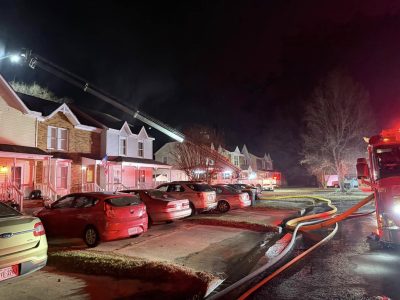 Late last night at 11:06pm, crews were dispatched to a suspected brush fire in the vicinity of Queen Annes Court. Engine 10, Brush 10 and 101 responded. Upon arrival crews found a two story abandoned structure, fully involved in close proximity to the nearby townhomes. Station 10 quickly upgraded to a full structural assignment. The fire was quickly brought under control within one hour and was confined to the abandoned structure. One patient was treated for non-life-threatening injuries and transported to a local hospital. Crews remained on-scene for over 5 hours extinguishing hotspots.